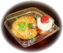 We offer plant based clamshells made from corn starch PLA resin. They are perfect solution for “take-out” food. They are